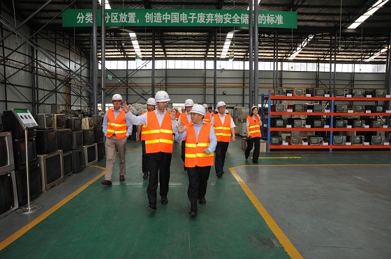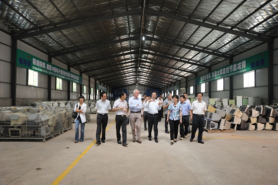 圖四 伯納德.福克斯先生(前左一)、許開華董事長(前右一)等參觀武漢分公司電子廢棄物倉庫